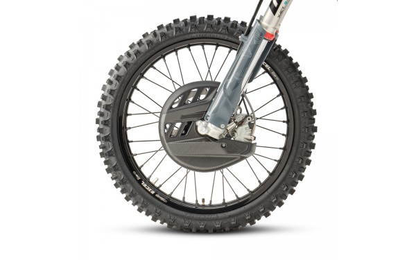 Model FE 350 PRO je standardně vybaven chrániči brzdových kotoučů vpředu i vzadu. Přední chránič je vyroben z odolného plastu pro optimální ochranu při minimální hmotnosti. Zadní chránič je CNC obráběný z hliníku pro maximální pevnost. Chrániče poskytují ochranu kotoučů před kameny a větvemi v terénu. Design umožňuje snadnou montáž a demontáž. Chrániče jsou navrženy pro minimální vliv na chlazení brzdového systému.