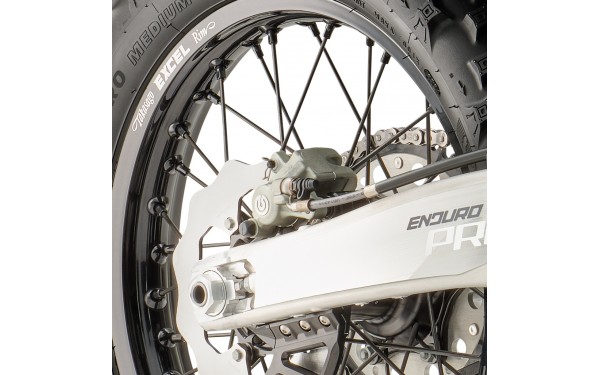 Exkluzivní Factory Racing Wheelset je standardní výbavou řady Pro Series. Kola jsou osazena WP CNC obráběnými náboji pro minimální hmotnost a maximální tuhost. EXCEL Takasago hliníkové ráfky poskytují optimální poměr pevnosti a hmotnosti. Nerezové dráty zajišťují dlouhou životnost a odolnost proti korozi. Factory Racing kola snižují neodpruženou hmotnost a zlepšují ovládání. Design ráfků je optimalizován pro enduro použití s vynikající odolností proti nárazům.