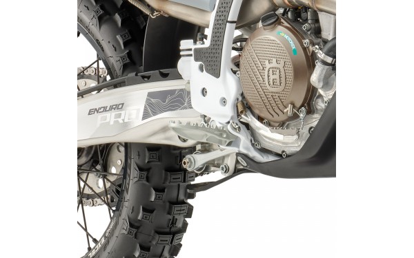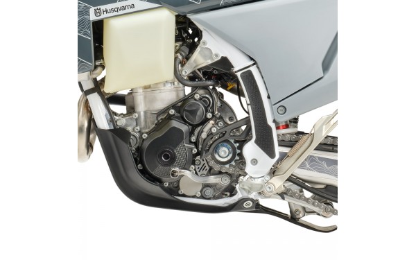 Model FE 350 PRO je standardně vybaven krytem motoru s ochranou přepákování. Kryt je vyroben z odolného hliníku pro maximální ochranu klikové skříně a výfuku. Integrovaná ochrana přepákování chrání zadní tlumič před poškozením. Design krytu je optimalizován pro minimální hmotnost při maximální ochraně. Kryt umožňuje snadný přístup k výměně oleje bez nutnosti demontáže. Konstrukce zajišťuje ochranu při jízdě v náročném terénu.