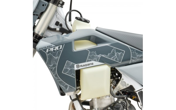 Palivová nádrž s objemem 8 l zajišťuje dostatečný dojezd pro dlouhé enduro trasy. Nádrž je vyrobena z odolného plastu s optimální flexibilitou. Tvar nádrže je navržen pro pohodlné uchopení koleny při stání a agresivní jízdě. Nádrž je umístěna nízko a centrálně pro optimální rozložení hmotnosti. Uzávěr nádrže je bezpečnostní s odvzdušněním. Design nádrže přispívá k kompaktním rozměrům motocyklu.