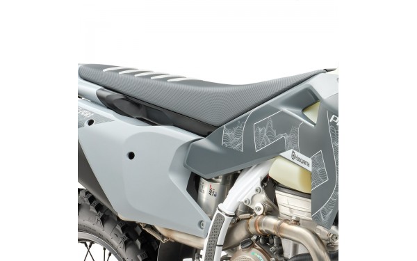 Exkluzivní šedé plasty odlišují řadu Pro Series od standardních modelů a poskytují jedinečný vzhled. Plasty jsou vyrobeny z odolného polypropylénu s optimální flexibilitou pro enduro použití. Design plastů je navržen pro minimální hmotnost při zachování maximální ochrany. In-mould grafika je integrována přímo do plastu pro dlouhou životnost. Model je standardně vybaven krytem motoru s ochranou přepákování pro maximální ochranu v terénu. Chrániče brzdových kotoučů (přední z plastu, zadní CNC obráběný z hliníku) chrání kotouče před poškozením. Ergonomický tvar umožňuje snadný pohyb jezdce při stání a přesouvání hmotnosti.