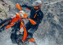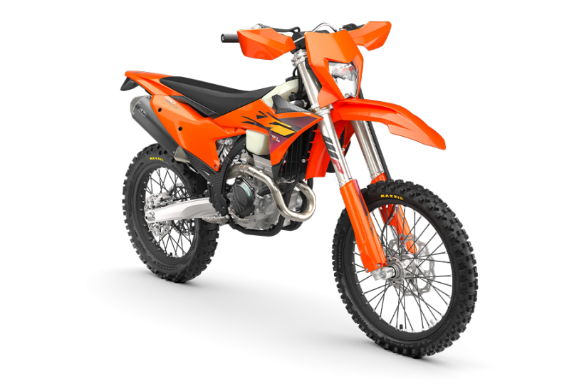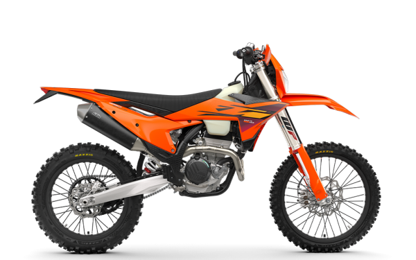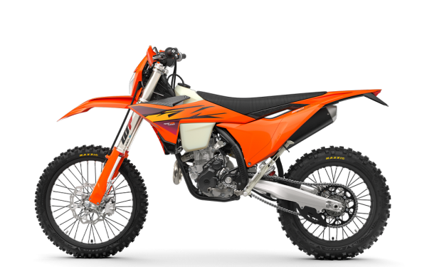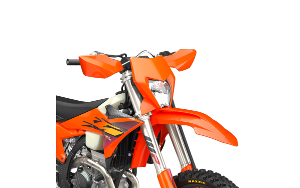 Řada KTM EXC-F dostává svěží barevnou aktualizaci. Dominantní oranžová barva je doplněna odstíny tmavě fialové a červené, což vytváří unikátní a ultra READY TO RACE vzhled. Veškerá grafika zůstává na svém místě díky in-mold technologii, zatímco sedlo je vybaveno vysoce přilnavým potahem v černé barvě se stejnou texturou, která je sdílena s ochrannými kryty rámu, bočními kryty nádrže a polstrováním řídítek.