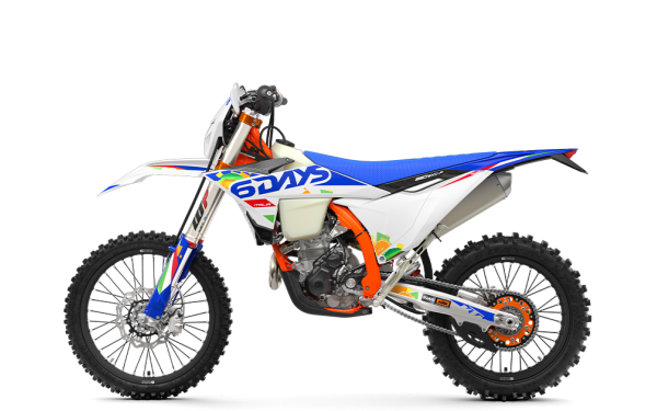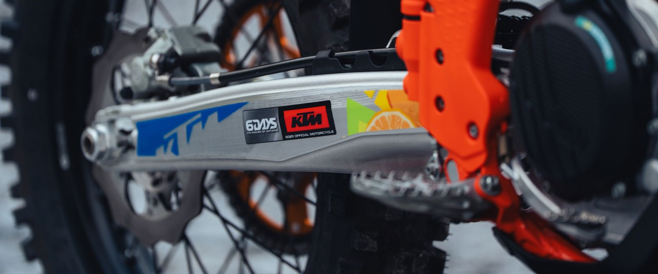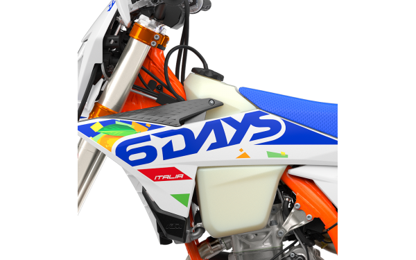 První KTM nesoucí jméno 6DAYS se objevila již v roce 1996. Téměř 30 let později stále udržujeme toto dědictví naživu. Všechny modely KTM 6DAYS dostávají kompletní 6DAYS úpravu, od obráběných oranžově eloxovaných brýlí až po pevný zadní brzdový kotouč. Každý jednotlivý prvek na modelu 6DAYS je speciálně vybrán pro daný úkol, opatřen vyhledávaným logem 6DAYS a vypuštěn k dominanci na trati.