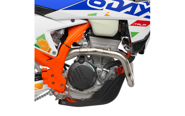 Ventilátor chladiče je standardně vybaven napříč celou řadou modelů KTM EXC a EXC-F. Zajišťuje optimální provozní teplotu motoru i v nejnáročnějších podmínkách, jako je pomalá jízda v technickém terénu nebo dlouhé stoupání.