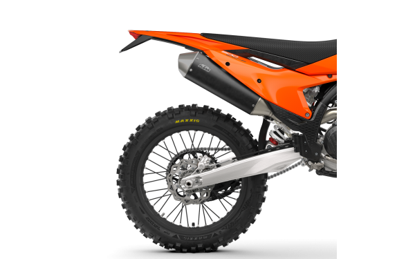 Poskytující štěkot k útoku KTM 500 EXC-F, výfukový systém je navržen tak, aby dodával tvrdě bijící výkon při nejnižší možné hmotnosti. Dvoudílná hlavová trubka je navržena tak, aby byla co nejkompaktnější, s vedením hlavové trubky extrémně blízko k motoru pro maximální centralizaci hmot a minimální vystavení kamenům. Na konci produkujícím hluk je krátký, kompaktní tlumič vyrobený z lehkého hliníku a dokončený v prémiové matně černé povrchové úpravě.