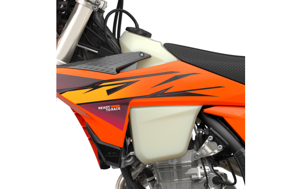 Průhledná polyetylenová palivová nádrž je charakteristickým prvkem řady KTM EXC-F. Po důkladném testování na závodech od GNCC až po nejtěžší FIM hard enduro závody jsou tyto nádrže postaveny opravdu jako tanky! Jednodílné palivové čerpadlo a filtr řídí přívod paliva, zatímco servis je velmi jednoduchý díky snadnému přístupu k palivovému filtru. Nová nádrž o objemu 8,5 litru je navržena tak, aby maximalizovala spotřebu paliva a zároveň se dokonale integrovala s ergonomickými plasty.