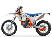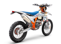 Motocykl KTM 250 EXC-F SIX DAYS možná má ten nejmenší motor ze všech čtyřtaktních modelů KTM, ale když dojde na opravdový terén, není to žádný prcek. Zcela nový podvozek, vysoko položený limit otáček a sebejisté jízdní vlastnosti dělají z tohoto stroje skutečného enduro hrdinu. Stačí jediný pohled na získané trofeje – a stejně působivá prodejní čísla – a jedno je více než jisté: KTM 250 EXC-F SIX DAYS 2024 za to umí pořádně vzít.