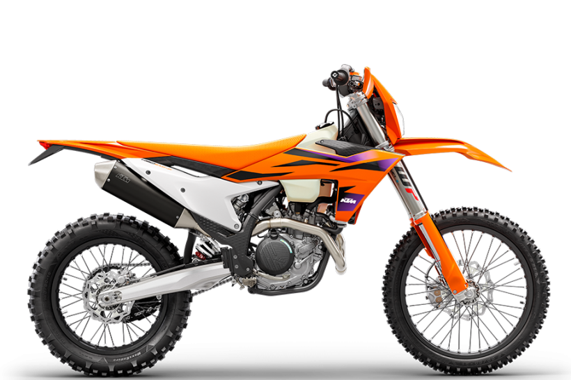 KTM 450 EXC-F 2024 přináší do své třídy novou chuť hledat jízdní limity. S novým podvozkem, odpružením, závodní kapotáží a ergonomií zaměřenou na jezdce – nemluvě o jednom z nejúspěšnějších motorů o objemu 450 cm3 ve třídě – je model KTM 450 EXC-F připraven vyrazit ze startovní brány vstříc vítězství.