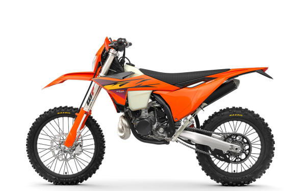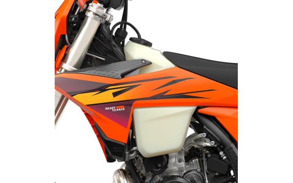 Řada KTM XC-W dostává svěží barevnou aktualizaci. Oranžová dominuje barevné paletě, ale odstíny tmavě fialové a červené se také objevují, vytvářející unikátní, ale ultra READY TO RACE vzhled. Jako vždy všechny grafiky zůstávají na místě díky technologii in-mold, zatímco sedlo obsahuje vysoce přilnavý potah sedla v černé barvě se stejnou texturou sdílenou napříč ochrannými kryty rámu, bočními kryty nádrže a chrániči řídítek.