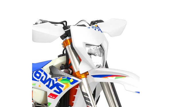 Řada KTM 6DAYS vzdává hold úspěchům na ISDE Italia 2026 s působivou grafikou, která zahrnuje barvy italské vlajky, lesklý oranžový rám a výrazné modré akcenty. Každý detail připomíná závodní dědictví a úspěchy na nejprestižnějších enduro závodech světa.