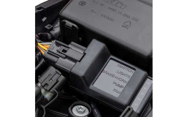 Offroad Control Unit - neboli OCU - je umístěna pod sedlem a nahrazuje všechny elektronické pojistky a relé. Všechny výstupy jsou spínány v závislosti na signálech z regulátoru napětí a ECU nepřetržitě. V případě nadproudu jsou výstupy deaktivovány jednotlivě. To umožňuje snadnou detekci chyb, protože stav každého výstupu je indikován červenou nebo zelenou LED diodou. To znamená, že diagnostika elektrického problému na trati je stejně snadná jako zvednutí sedla a již není potřeba nosit drobné pojistky.