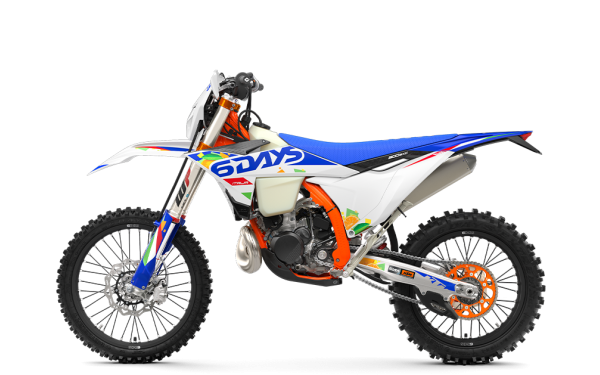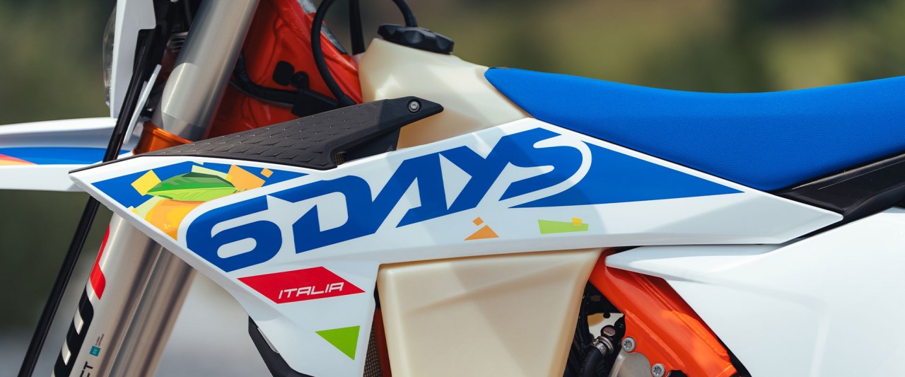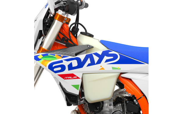 První KTM nesoucí jméno 6DAYS se objevila již v roce 1996. Téměř 30 let později stále udržujeme toto dědictví naživu. Všechny modely KTM 6DAYS dostávají kompletní 6DAYS úpravu, od obráběných oranžově eloxovaných brýlí až po plný zadní brzdový kotouč. Každý jednotlivý prvek na modelu 6DAYS je speciálně vybrán pro daný úkol, opatřen vyhledávaným logem 6DAYS a vypuštěn k dominanci na trati.