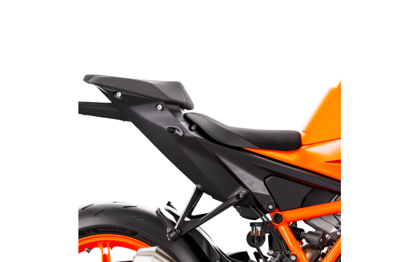 Zaměřený na výkon, ale stále pohodlný pro celodenní jízdu, KTM 1390 SUPER DUKE R je navržen tak, aby byl schopný na okruhu jednu sekundu a reálným pasažérským motocyklem v další. Z tohoto důvodu je sedlo vyrobeno tak, aby bylo maximálně použitelné ve všech scénářích. Při 834 mm je to perfektní výška pro agresivní práci na okruhu, ale dostatečně nízká pro snadný přístup a pohodlí. Sedlo spolujezdce nebylo zapomenuto, což ho činí stejně pohodlným pro delší jízdy. Tvarování sedla poskytuje vynikající oporu při sportovní jízdě i při dlouhých cestách.