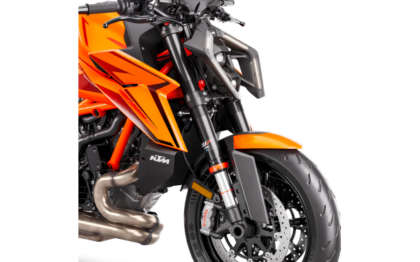 KTM 1390 SUPER DUKE R bere věci vážně s 48 mm WP APEX Open Cartridge vidlicí, která přebírá kontrolu vpředu. Plně nastavitelná s kompresí, odskokem a předpětím. Vidlice se pyšní rozdělením funkcí - komprese na jedné straně a odskok na druhé - což vám umožňuje optimalizovat perfektní nastavení. Tento design poskytuje vynikající zpětnou vazbu a precizní ovládání v každé situaci, od sportovní jízdy po každodenní dojíždění.