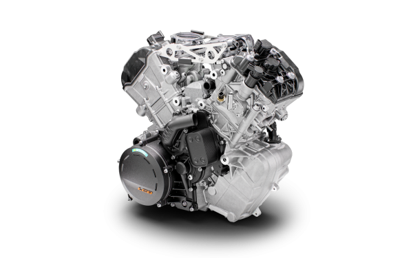 Srdcem THE BEAST je nejnovější verze legendárního LC8 V-twin motoru s objemem 1350 cm³. KTM 1390 SUPER DUKE R je hladový po točivém momentu, epicky výkonný a vzrušující. S téměř dokonalým poměrem výkonu k hmotnosti 1:1, výkonem 190 koní a 145 Nm točivého momentu při hmotnosti 200,5 kg bez paliva - s homologací EURO 5+ - tento motocykl otáčí planetou na její ose spíše než po ní jezdí. Motor využívá dvojité zapalování pro optimální spalování, Keihin EMS s ride-by-wire pro precizní odezvu plynu a kapalinové chlazení s výměníkem voda/olej pro stabilní provozní teploty i při extrémním zatížení.