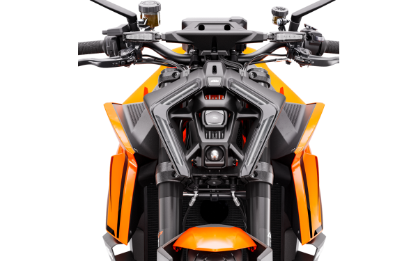 Když jste naked, nemáte co skrývat. KTM 1390 SUPER DUKE R posouvá kompaktnost na novou úroveň. Nižší, surovější a svalnatější design se pyšní ostrým tvarem nádrže, funkčními aero winglets a dravým LED světlometem. Karoserie je navržena tak, aby maximalizovala aerodynamickou účinnost při zachování charakteristického naked vzhledu. Winglets generují přítlak při vysokých rychlostech a pomáhají udržet přední kolo na zemi při razantní akceleraci.