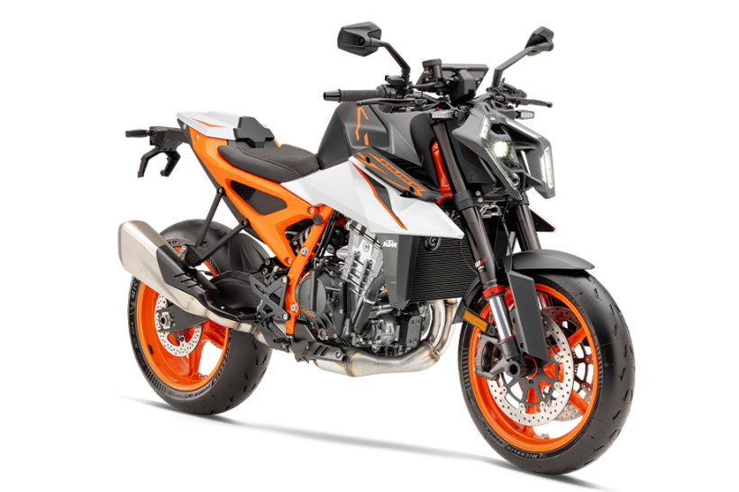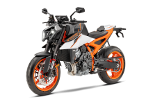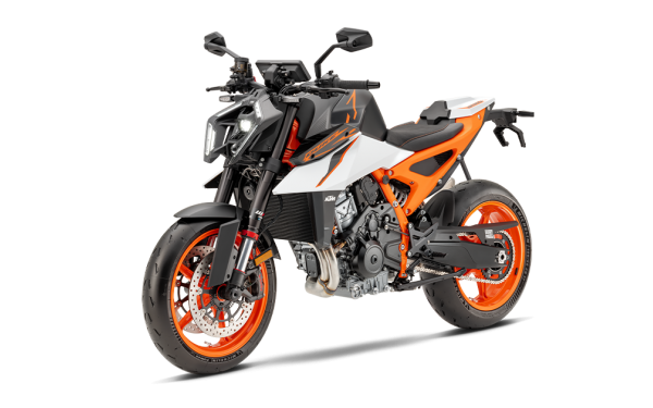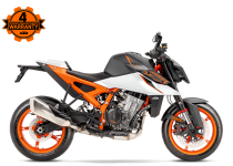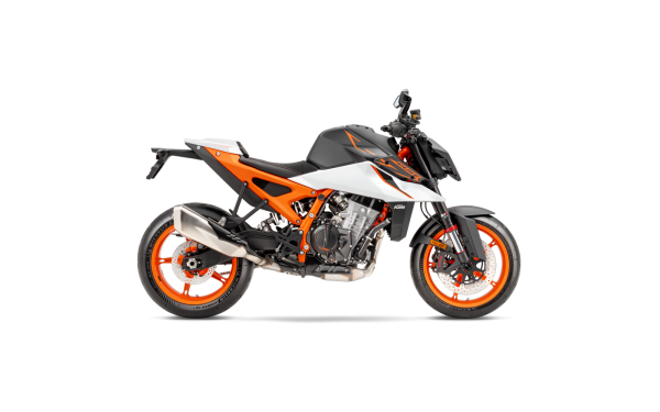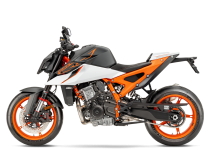 KTM 990 DUKE R je ultimátní naked bike pro ty, kteří hledají maximální výkon a precizní ovládání. S dvouválcovým DOHC motorem o objemu 947 cm³ produkujícím působivých 127,84 PS a točivý moment 103 Nm, tento stroj nabízí explozivní akceleraci a nezapomenutelný zážitek z jízdy. Extrémně nízká hmotnost pouhých 179 kg bez paliva v kombinaci s pokročilým odpružením WP APEX a prémiovou brzdovou soustavou zajišťuje, že KTM 990 DUKE R dominuje jak na městských ulicích, tak na klikatých horských silnicích. Toto je naked bike v nejčistší podobě - READY TO RACE.