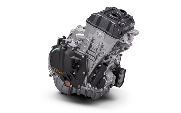 Samozřejmě, toto není poprvé, co se jméno DUKE a 990 objevují společně. Nicméně tento stroj má zcela jiný motor. Usazený v zcela novém rámu je 947 cm³ LC8c parallel-twin motor, produkující 123 koní a 103 Nm. Nejenže je výkonný, ale je také nejkompaktnější twin ve své třídě, což přispívá k obratným jízdním charakteristikám KTM 990 DUKE. Agresivnější profily vačkových hřídelí a delší otevření ventilů vedou ke zlepšené ovladatelnosti, zatímco širší chladič s optimalizovaným prouděním vzduchu zajišťuje stabilní teploty. Nový výfukový systém zaokrouhluje tento výkonný balíček.
