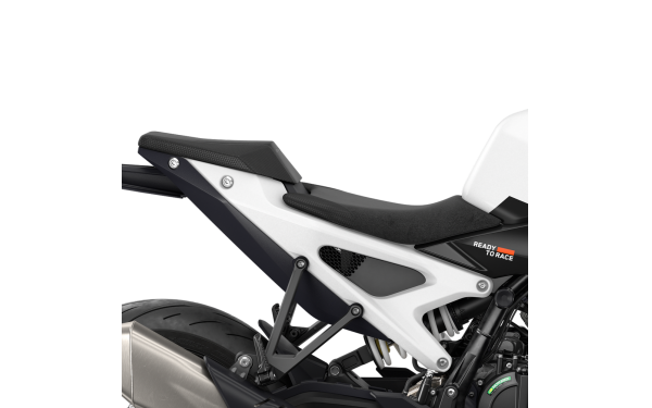 Při výšce 825 mm a s náklonem 2° vpředu bylo sedlo jezdce na KTM 990 DUKE speciálně vyvinuto tak, aby poskytovalo sportovní, agresivní posez, aniž by kompromitovalo pohodlí. Potah sedla je také navržen tak, aby poskytoval ideální bod mezi gripem a svobodou pohybu, jak pro textilní, tak pro kožené jezdecké oblečení. Tvarování sedla zajišťuje výbornou oporu při sportovní jízdě i dlouhodobé pohodlí.