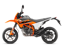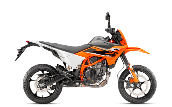 Malý ano, ale rozhodně ho nepodceňujte – tento supermoto stroj miluje zatáčky a vyvolává úsměvy. S lehkou ovladatelností, dostatečným výkonem, nejmodernějšími asistenčními systémy a špičkovými komponenty je KTM 125 SMC R připraven dominovat všemu od školních parkovišť až po opuštěné kartové dráhy. S kompaktním jednoválcovým motorem o objemu 125 cm³ produkujícím 15 koní a točivý moment 11,5 Nm, tento stroj nabízí ideální kombinaci výkonu pro začínající jezdce a zábavu pro zkušené piloty. Hmotnost pouhých 145 kg bez paliva činí z KTM 125 SMC R nejlehčí stroj v naší supermoto nabídce a perfektní volbu pro učení se supermoto stylu jízdy.