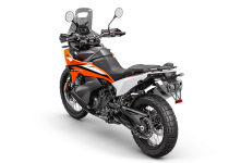 Nádrž je navíc vyrobená z vysoce odolných materiálů, je tedy velmi odolná vůči nárazům, jak prokázalo úspěšné použití podobného konceptu při extrémních závodech Rally Dakar v týmu KTM Factory Racing. Výsledkem je to nejlepší z obou světů: pocit útlejšího menšího terénního motocyklu s mimořádným dojezdem více než 400 km v otevřeném prostoru.
