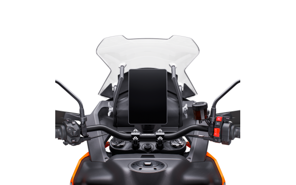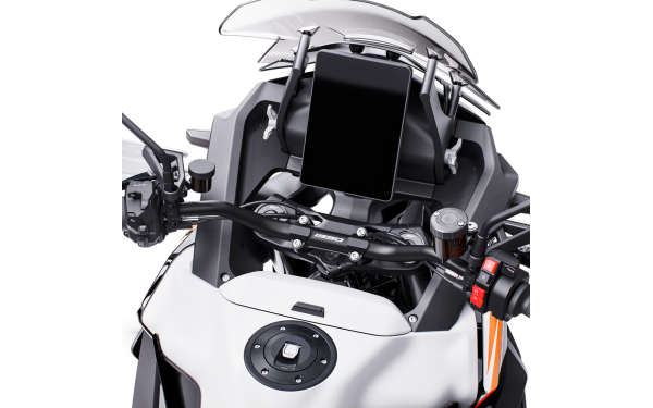 Zcela nový 8" TFT displej s portrétní orientací a dotykovým ovládáním představuje mistrovské dílo v oblasti inteligentního designu uživatelského rozhraní. Displej využívá technologii Optically Bonded s anti-glare, anti-fingerprint a anti-reflex povrchem, což zajišťuje perfektní čitelnost za všech světelných podmínek. Tento displej slouží jako centrální ovládací jednotka pro všechny funkce a nastavení KTM 1390 SUPER ADVENTURE S, od jízdních režimů přes nastavení odpružení až po konektivitu. Intuitivní menu a logické uspořádání funkcí umožňuje rychlou a bezpečnou obsluhu i během jízdy. Více informací naleznete v sekci KTM Technologie.