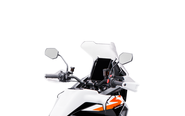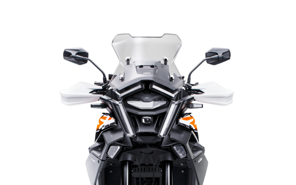 Nové elektricky nastavitelné plexi na KTM 1390 SUPER ADVENTURE S umožňuje nastavení v rozsahu až 70 mm. Toto plexi bylo navrženo ve větrném tunelu a poskytuje vynikající ochranu před větrem při minimální hlučnosti, což výrazně zvyšuje komfort při dlouhých cestách. Díky optimalizovanému tvaru a možnosti přesného nastavení si každý jezdec může najít ideální pozici pro různé rychlosti a podmínky. Při vyšších rychlostech na dálnici můžete plexi nastavit do nejvyšší polohy pro maximální ochranu, zatímco při pomalejší jízdě nebo v horkém počasí můžete plexi snížit pro lepší proudění vzduchu. Ovládání je jednoduché a intuitivní přímo z řídítek.