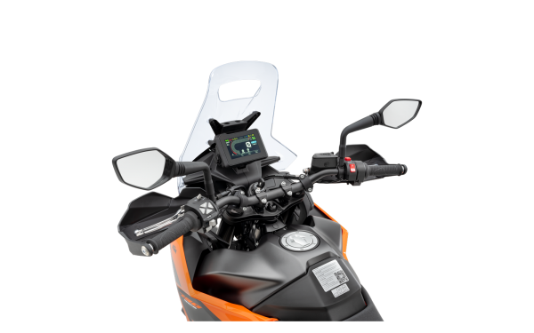 KTM 790 ADVENTURE je vybaven moderním TFT displejem, který poskytuje přístup ke všem důležitým informacím o motocyklu, jízdním režimům a nastavení elektronických systémů. Displej je navržen pro snadnou čitelnost za všech světelných podmínek a poskytuje intuitivní uživatelské rozhraní pro rychlé ovládání funkcí. Prostřednictvím displeje můžete snadno přepínat mezi jízdními režimy, kontrolovat stav paliva, sledovat spotřebu a přistupovat k dalším užitečným informacím. Moderní design a funkčnost TFT displeje činí z ovládání motocyklu jednoduchý a příjemný zážitek.