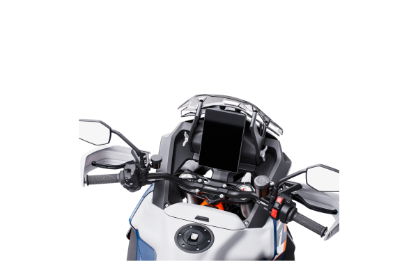 Zcela nový 8" TFT displej s portrétní orientací a dotykovým ovládáním představuje mistrovské dílo v oblasti inteligentního designu uživatelského rozhraní. Displej využívá technologii Optically Bonded s anti-glare, anti-fingerprint a anti-reflex povrchem, což zajišťuje perfektní čitelnost za všech světelných podmínek – od jasného slunečního svitu až po noční jízdu. Tento displej slouží jako centrální brána ke všem funkcím a nastavením KTM 1390 SUPER ADVENTURE R. Intuitivní ovládání dotykem vám umožňuje rychle přepínat mezi jízdními režimy, kontrolovat nastavení odpružení, sledovat navigaci a spravovat všechny elektronické asistenční systémy. Veškeré informace máte neustále na dosah ruky – od rychlosti a otáček až po spotřebu paliva, tlak v pneumatikách a stav všech bezpečnostních systémů. Více informací naleznete v sekci KTM Technologie.