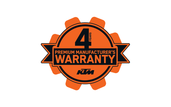 Tento motocykl je dodáván s PRÉMIOVOU TOVÁRNÍ ZÁRUKOU. Jezdci se mohou těšit na pokrytí až 4 roky - jeďte bez obav a zažijte vzrušení z jízdy na KTM s dodatečným klidem v duši. Pro zachování platnosti záruky musí být pravidelné servisní prohlídky prováděny podle servisního plánu u autorizovaného dealera KTM. Více informací a podrobnosti o tom, jak využít této nabídky, naleznete na stránce záruky KTM. Platí pro motocykly na skladě prodané od 3. 2. 2025. Tato záruka podtrhuje vysokou kvalitu a spolehlivost, kterou KTM garantuje u všech svých prémiových modelů, a poskytuje vám jistotu při dobývání i těch nejvzdálenějších destinací.