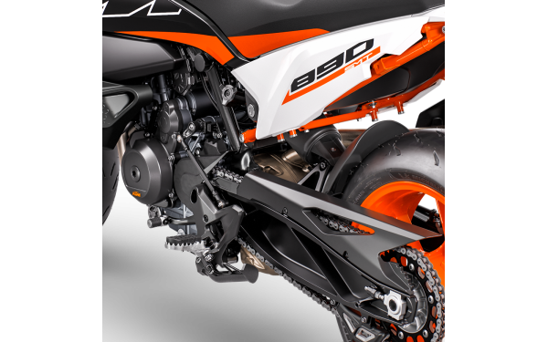 S lehkou a pevnou konstrukcí je podsedlový rám plně naložen pro útok na silnici. Motocykl pod vámi musí být postaven tak, aby vydržel. Hliníkový podsedlový rám byl vyvinut tak, aby byl kompaktní, lehký a dostatečně pevný pro přepravu plného nákladu zavazadel i spolujezdce na těch dlouhých loveckých výpravách za dokonalými horskými silnicami. Tato konstrukce zajišťuje, že KTM 890 SMT je připraven jak pro sportovní jízdu sólo, tak pro pohodlné touring cesty ve dvou s plným zavazadlovým systémem.