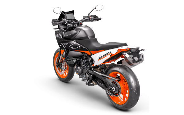 S bočními spoilery nádrže a zadními bočními panely o něco širšími než sedlo je projíždění horských průsmyků snazší díky vylepšenému pohybu jezdce. To také pomáhá se sníženým opotřebením sedla, zatímco štíhlý tvar palivové nádrže je optimalizován pro přesné ovládání a kontrolu při projíždění ostrých serpentin na kopci. Ergonomie je navržena tak, aby poskytovala maximální svobodu pohybu při aktivní jízdě a zároveň zajišťovala komfort při dlouhých touring cestách. Hmotnost 194 kg bez paliva a velkorysá nádrž 15,8 l činí z KTM 890 SMT ideálního společníka pro dlouhé cesty.