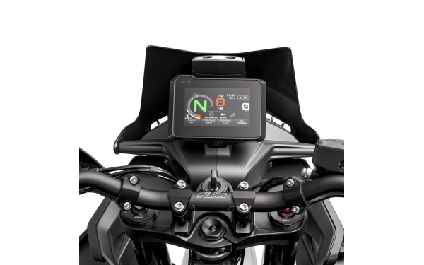 Nový nejmodernější plný 5" TFT displej vás informuje o všem, co potřebujete vědět o stroji pod vámi. S vylepšenou funkčností je každá funkce ilustrována infografikou motocyklu, která přímo ukazuje uživateli relevantní pole nastavení. Opticky lepený minerální skleněný displej zajišťuje optimální odolnost proti poškrábání a odleskům. Navíc volitelná Connectivity Unit umožňuje připojení mezi aplikací KTMconnect a TFT přes Bluetooth pro navigaci Turn-by-Turn+, hudbu, příchozí hovory a rychlý přístup k asistenční službě KTM na silnici.