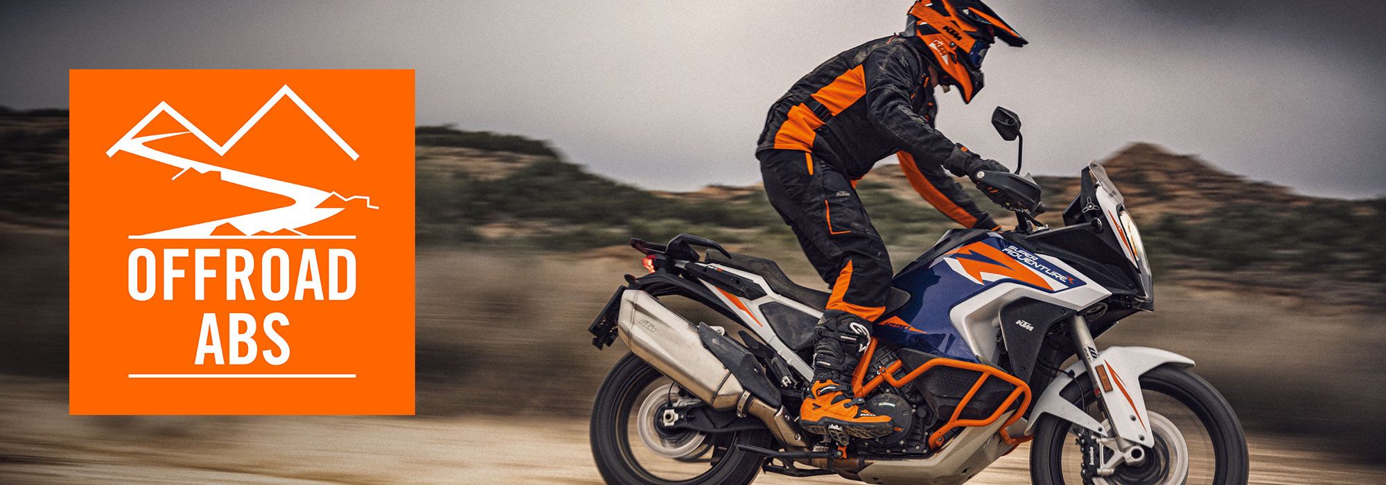 Off-Road ABS je speciálně navržen pro jízdu po štěrkových nebo prašných cestách. Tento systém upravuje funkčnost ABS tak, aby jezdcům poskytl větší kontrolu v off-roadových podmínkách. Tyto úpravy jsou navrženy tak, aby zlepšily váš zážitek z jízdy v terénu a poskytly vám více kontroly a bezpečnosti na náročných površích.